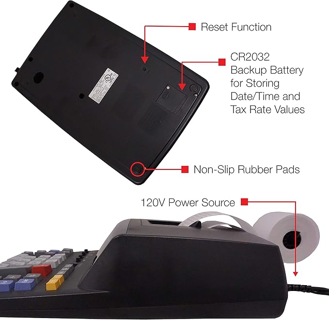 • ADDITIONAL FUNCTIONS: Includes memory plus, memory minus, and recall and clear memory keys. Include floating or fixed decimal, add mode, +/- key, item counter,
