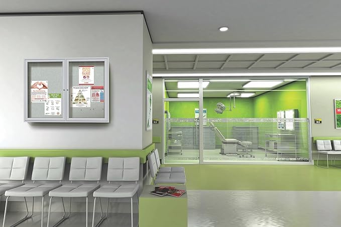 Ghent 36"x72" 3-Door Outdoor Enclosed Vinyl Bulletin Board, Shatter Resistant, with Lock, Satin Aluminum Frame - Ivory (PA33672VX-185), Made in the USA
