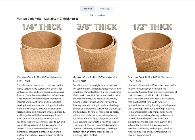 Manton Cork Premium Cork Roll - 4' x 25' x 1/4", 100% Natural Facing Grade Material for Bulletin Boards, Decorative Photo and Message Push Pin Displays - Perfect for Home, School, and Office