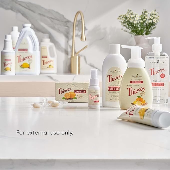 • Keep your hands germ-free with Thieves Waterless Hand Purifier, featuring a spicy-sweet aroma that everyone will love—perfect for home, office, or travel use.