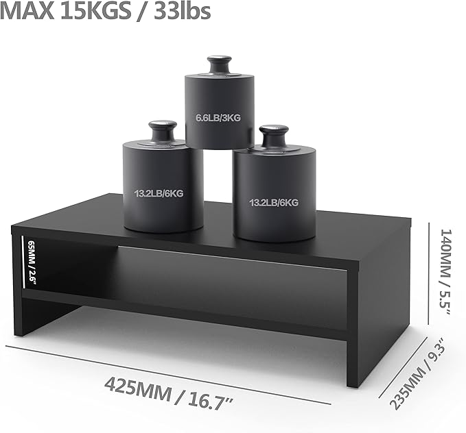 - 【2 Tiers for Desk Organization】Extra storage space while improving the height of your computer display. They are spacious enough to hold some of your larger sized things such as books, tablets. The storage of small stuffs is not even a problem.