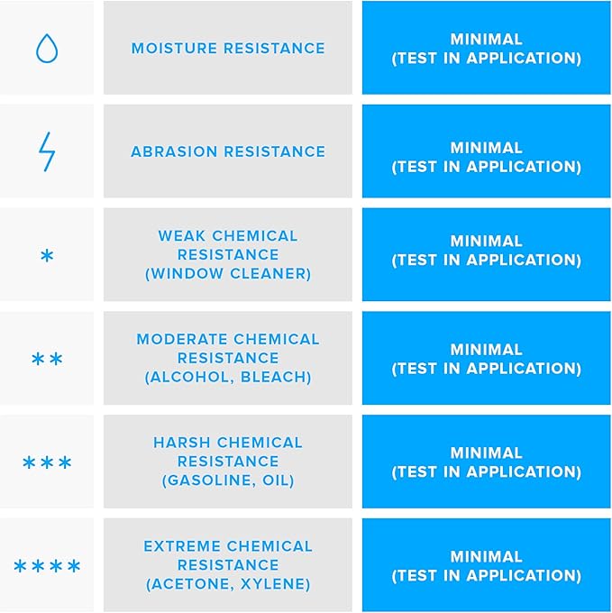 • Premium coated polypropylene label: Good smear/scratch resistance, excellent chemical resistance; can withstand temperatures from -65Β°F (-54Β°C) to 200Β°F (93Β°C)