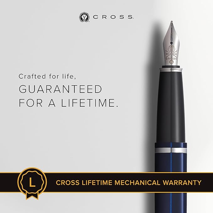 • Cross Calais fountain pen with medium nib comes in Blue Lacquer with Chrome accents