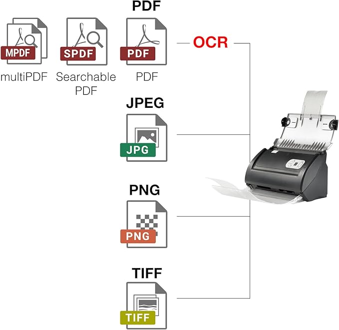 • Turn paper documents into searchable, editable files - save scans as searchable PDF files; OCR function included