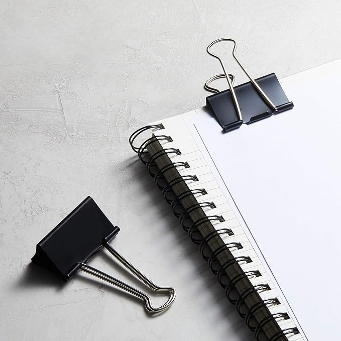 Amazon Basics Sturdy Binder Clips for Office Use, 48 Count (4 Pack of 12), Large, 2 in, Black
