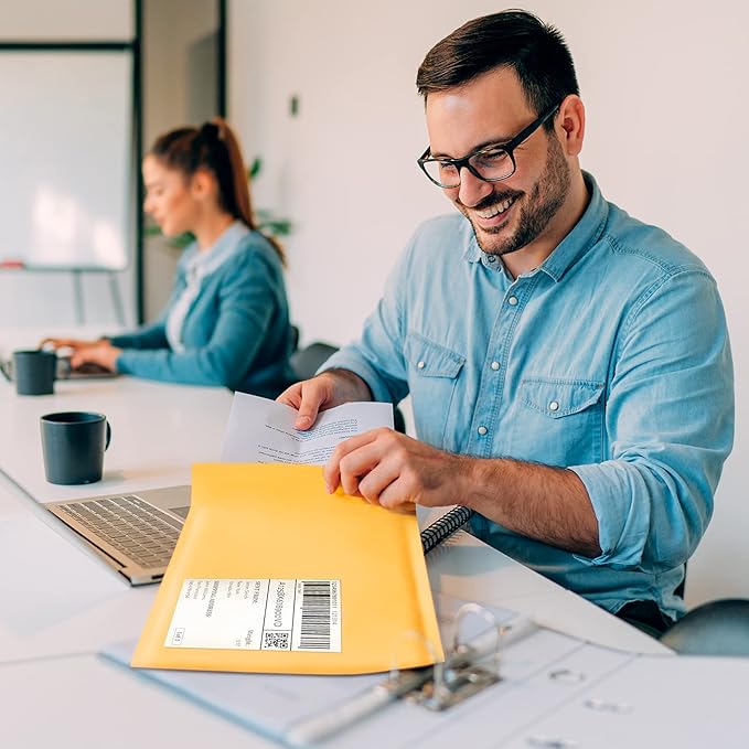 - Kraft Bubble Mailers: The yellow Kraft bubble mailers outer size is 8.5x12 inch, while the inner size is 8.5x11 inch, with yellow kraft paper, which color is bright and clean. Feel nice to the touch. Extra smooth surface is perfect for handwriting, labeling and stamping. With full air bubbles, our bubble mailers can protect your value products from damage caused by external impacts