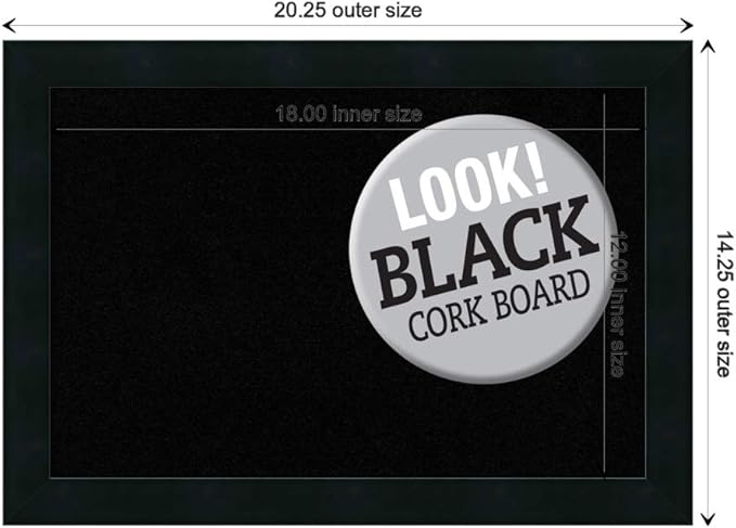 - DIMENSIONS: The overall size of this framed corkboard measures 20 in. x 14 in., including the frame. Its functional cork board area measures 18 in. x 12 in.