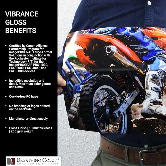 Vibrance Gloss Photo Printer Paper 10 mil 255 gsm Glossy Finish Premium Photo Paper Roll on 3in Core 17 inches x 10 feet Works with Most Inkjet Printers Including Professional Makes and Models