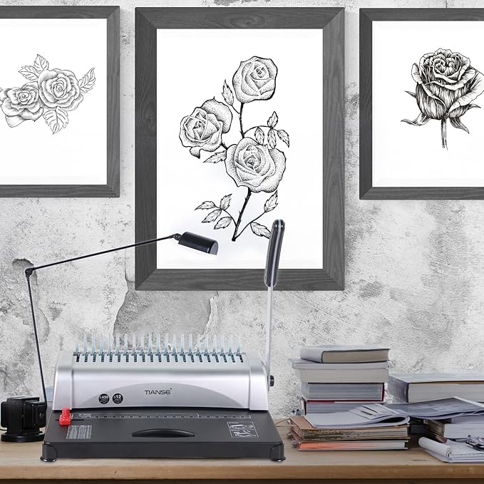 - 【Humanized Design】:TIANSE comb binding machine is suitable for Letter Size (19 holes), A4 Size (21 holes), A5 Size (15 holes). With adjustable edge guide, this machine also ensures a precise alignment with each document your bind, and you can easily customize the paper margin: 3mm, 4mm, 5mm to create professional-looking works (When you install the binder handle, be sure to install it 90 degrees vertically)