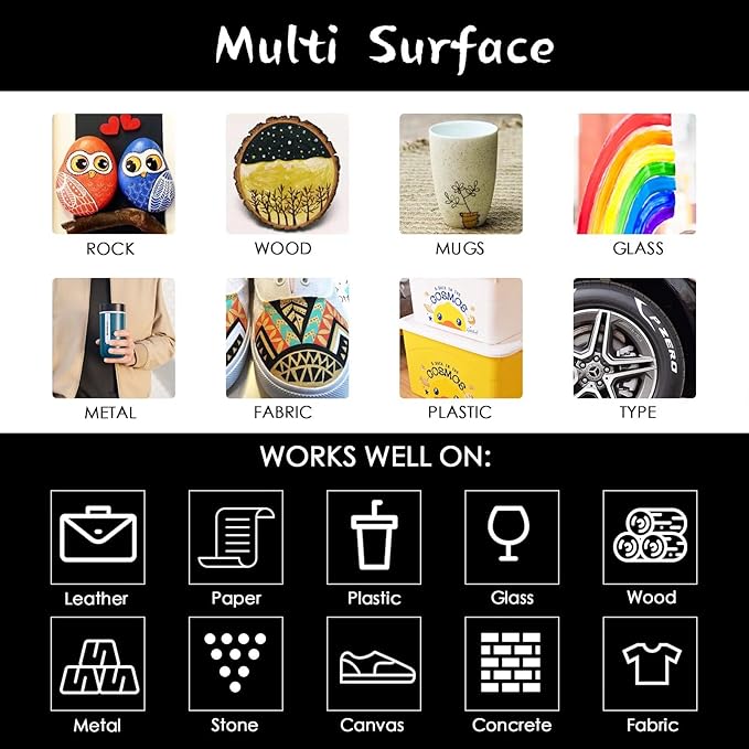 - 【USE FOR DIFFERENT CRAFT PROJECTS】Metallic markers are a great media to use for black paper, scrapbooking, photo albums, DIY crafts, cards making, customized mugs, rock painting and holiday decorations. Easily mark light and dark surfaces with the bright, highly visible metallic finish of these metallic permanent markers, adds sparkle embellishment to various craft works.