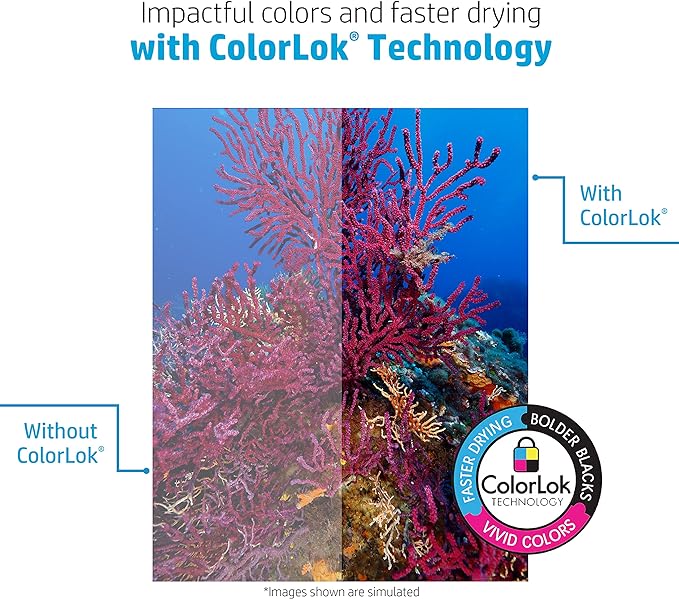 • Colorlok technology printing paper - Colorlok technology provides more vivid colors, bolder blacks and faster drying. See images.