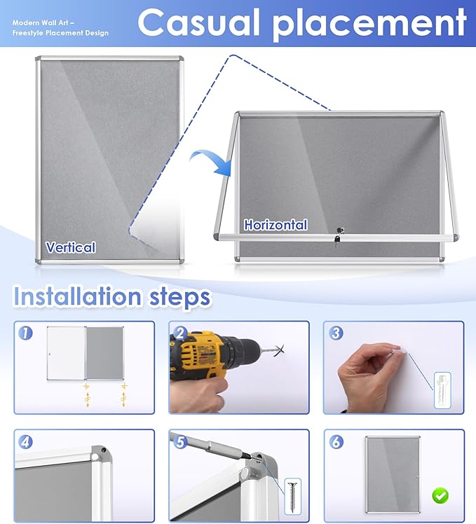 - Versatile Use —Can be used for a variety of purposes, including posting announcements, displaying artwork or photos, and presenting information for public viewing.With a simple and intuitive design ,it's convenient to post and update.