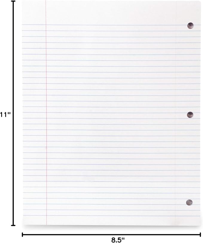 • 600 Sheets (6 packs of 100 sheets) of loose leaf filler paper for 3 ring binder - full cases also available!