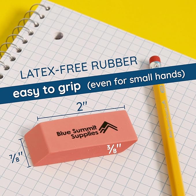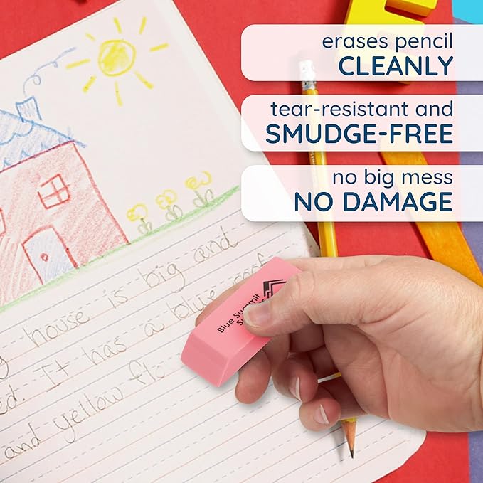 - Never worry about smudging on your paper when you use our smudge-proof, premium quality pink erasers, which are a must-have for any student’s school supplies pack