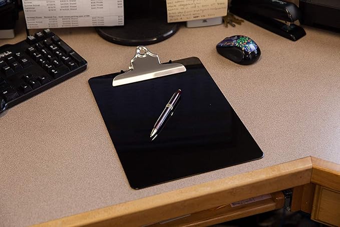 Black Plastic Clipboards (Set of 6) Multipack - 12.5x9 Inch Black Clipboard with 100 Sheets Holding Capacity Butterfly Clip | Colored Acrylic Clip Boards in Bulk | Office, Classroom, School Supplies