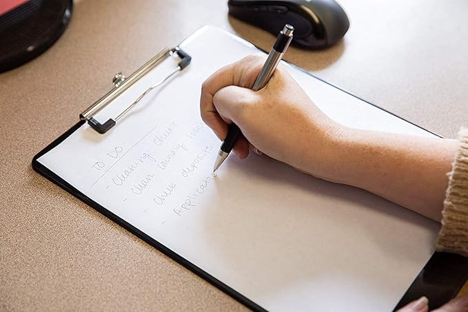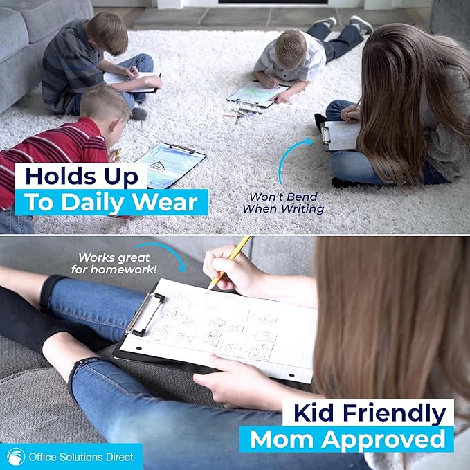 - β HARD BUT NOT BRITTLE: While we canβt say you wonβt get a few scratches on these, we can tell you it will not chip if you accidentally drop it on the floor. These black clipboards are made of lightweight yet durable plastic; smooth, waterproof surface; suitable for indoor or outdoor use. Not thick and bulky like cheap clipboards, but they wonβt bend either!