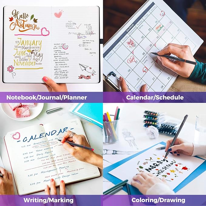 - π¨SMOOTH WRITING --- Fine tip marker pen set with superfine, metal-clad fine tipped and outstanding performance in all areas of writing, drawing, coloring, easy and comfortable to write. Great for home, office, work, business, colleague, church, club, and organazition activities.