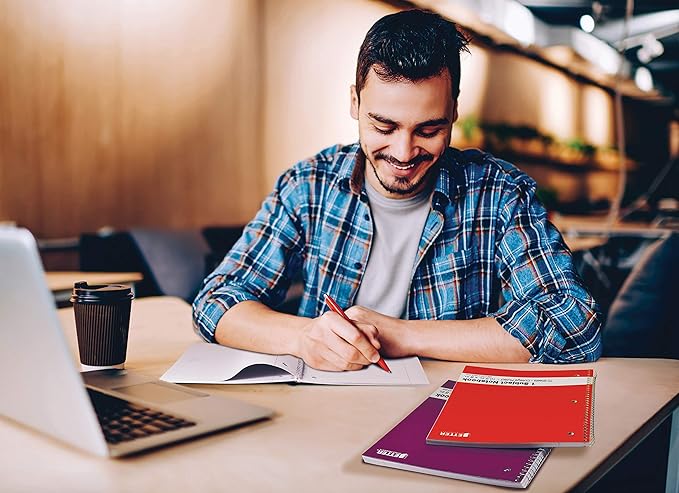 • BINDER READY: Each notebook is 8" x 10.5" and 3-hole punched to fit a standard-sized 3-ring binder; snag-free spiral binding won't catch on clothing or in backpacks
