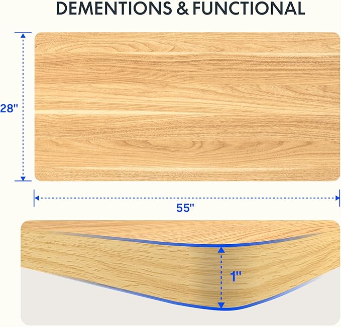 - AMPLE WHOLE-PIECE DESKTOP: With its whole-piece 1β eco-friendly desktop, this standing desk provides plenty of room for your computer setup, documents, and accessories, creating a well-organized and productive work environment. Due to hand measurements, desktop dimensions may vary slightly by 0 to 1β.
