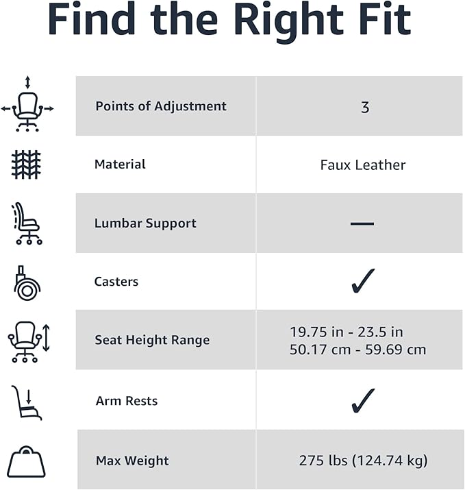 Amazon Basics Classic Puresoft PU Padded Mid-Back Height Adjustable Office Computer Desk Chair with Armrest, 26"D x 23.75"W x 42"H, Black