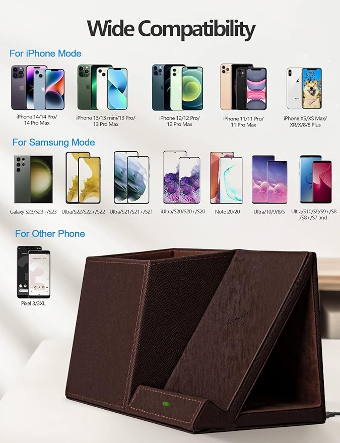 - Universal Compatibility of Wireless Charger -If you use a smart device that supports wireless charging and you're always reaching for it on the job, this desk organizer is the one to get. It works with IPhone 16/15/15 Pro/15 Pro Max/15 Plus/ 14/14 Plus/14 Pro/14 Pro Max/13/13 Pro Max/13 Mini/SE 2022/12/12 Mini/12 Pro Max/X/XS/XS Max/XR/8 Plus/8;Samsung Galaxy S24/S23/22/S22 Ultra/S21/S20/S10/S10 Plus/S10E/S9/S9 Plus/Note 9/S8/S8 Plus/Note 8/S7