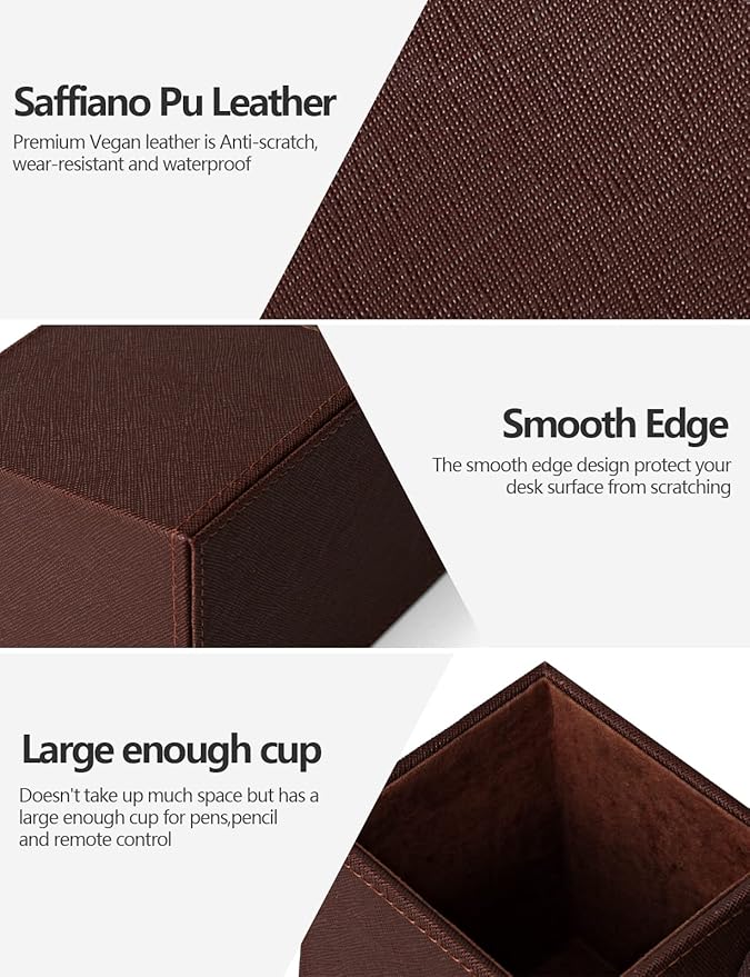 - Giftable Idea - This desk caddy is made of faux leather with coordinated stitching and soft velvet interior. Come with stylish package, these stylish pencil organizer is idea gift for men or women on Birthday, Father's day, Valentine's day, Anniversary day, Graduation, Christmas,etc. Your friends and your familes will love it