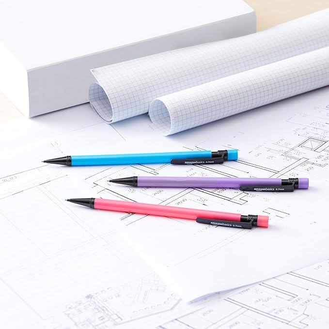 Amazon Basics Mechanical Pencils 0.7mm For Writing, Drawing, Bulk Office and School Supplies, Multicolor, 48-Pack