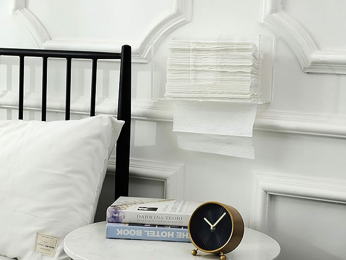 - VERSATILE PRODUCTοΌThe paper towel dispenser is made of high quality acrylic,sturdy and durable,simple and modern appearance with one-piece construction that will brighten any restroom kitchen dining tables,restaurant,club,offices desk,classroom etc.Wall hanging design helps save space and help keep workspace neat and tidy also easy to clean
