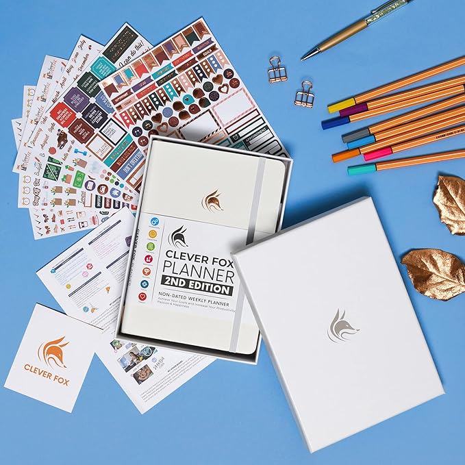 Clever Fox Planner 2nd Edition – Colorful Weekly & Monthly Goal Planner, Time Management & Productivity Organizer, Undated, A5 (White)