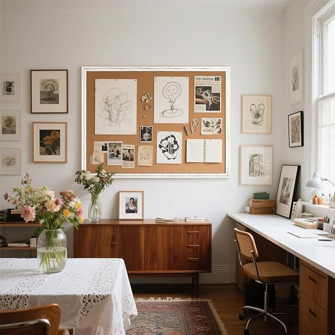 - 【Well-made Wooden Frame】Our white cork board features a precision-crafted frame, which is sturdy and durable. And the rustic white frame adds a touch of elegance to your space. The wooden frame has smooth edges to protect your hands from scratches