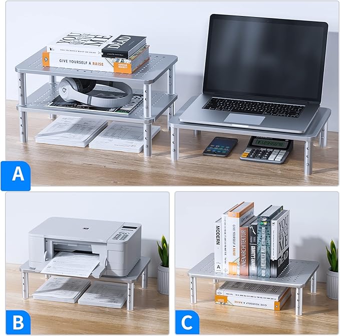- WIDE COMPATIBILITY: The monitor stand riser supports up to 44 lbs to hold monitors, laptops up to 14.57”, printers, gaming consoles, and more. The anti-slip rubber pads add stability and protect surfaces from scratches.