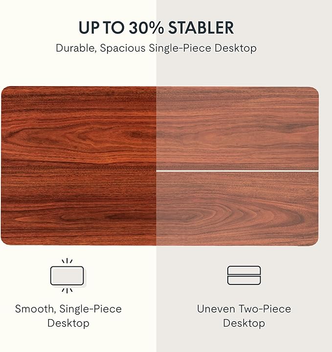 - AMPLE WHOLE-PIECE DESKTOP: With its whole-piece 1β eco-friendly desktop, this standing desk provides plenty of room for your computer setup, documents, and accessories, creating a well-organized and productive work environment. Due to hand measurements, desktop dimensions may vary slightly by 0 to 1β.