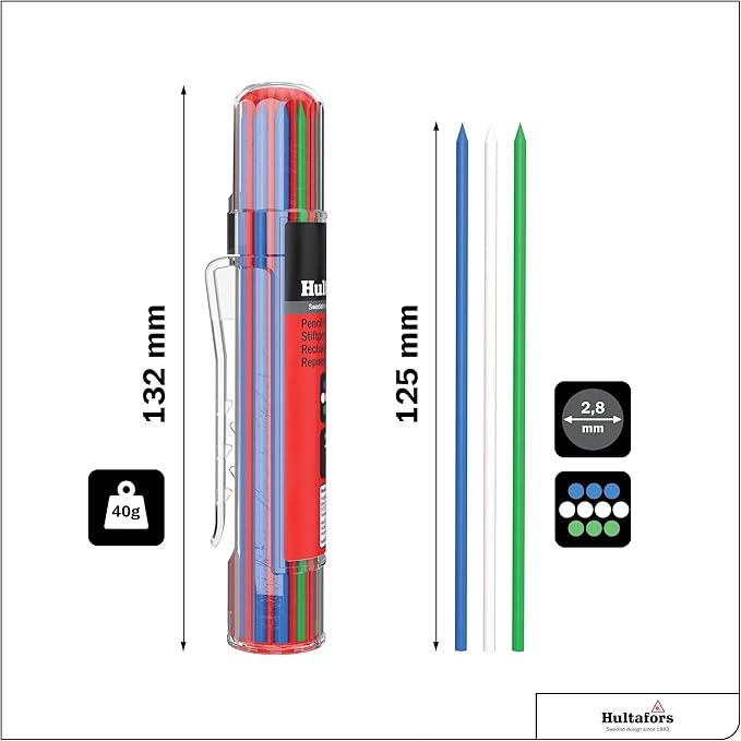 Hultafors Tools 650140U Dry Marker Refills HRD, Heavy Duty, Multi-Purpose, Blue, Green & White, 10 Leads