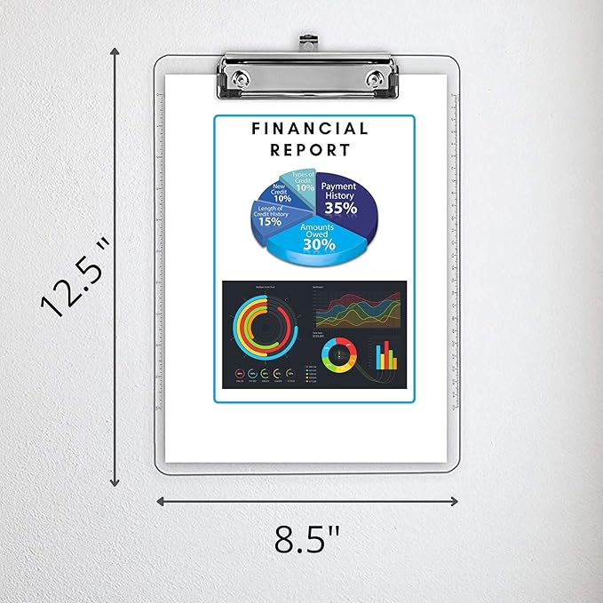 PERFORMORE Clear Acrylic Clipboards 6-Pack | 12โ x 9โ Letter-Size Writing Boards | Durable Transparent Plastic with Silver Low-Profile Clips | Ideal for Office, School, Events, and Seminars