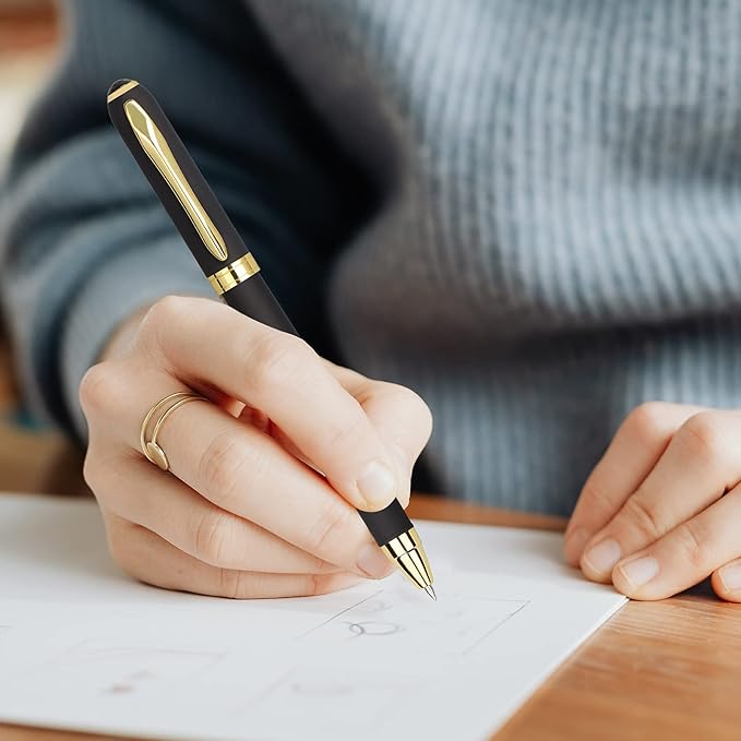 - ✍ELEGANT&COMFORTABLE DESIGN: The whole neutral pen with soft touch rubber coated,which brings you a comfortable writing experience.The durable metal clip is convenient for you to carry in your pocket.The shiny gold parts making the pen look more luxurious.