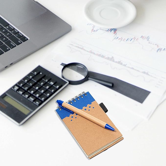 DISCOUNT PROMOS 10 Recyclable Spiral Small Notebooks Pack - 60 Lined Pages - Blue