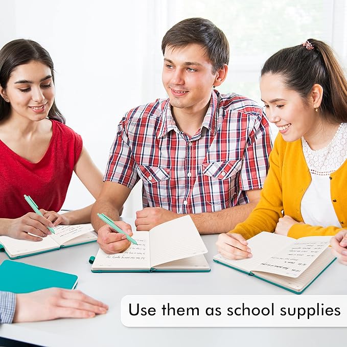 - Feela 3 Pack Classic Ruled Notebooks contains 3 classic emerald ruled sturdy cover notebooks and 3 Black Retractable Pens. Each of the notebooks measures 8.3” x 5.1”, which is perfect to carry and easily held by young girls and boys. These black cute pens are customized to be placed in the pen holder, which is pretty convenient.