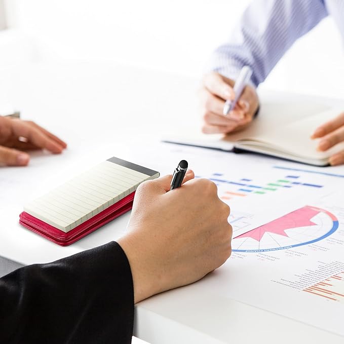 - Package contain: you will get a mini pocket notepad holder with 50 lined sheets, a metal pen and 8 memo book refills with 30 lined paper per pad; They are ruled pages, can comfortably, good for business, conference, meeting, office and travel; Can carry and use it anywhere