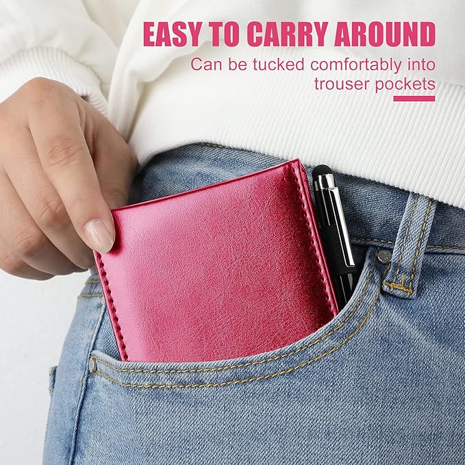 Outus 10 Pcs Pocket Notebook with Pen Set Included Mini Pocket Notepad Holder with 50 Lined Sheets, Metal Pen, 8 Pcs 3 x 5 Inch Memo Book Refills, 30 Lined Paper Per Note Pad (Rose Red)