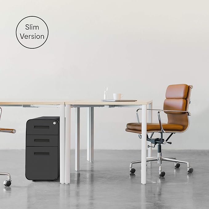 Laura Davidson Furniture Stockpile Slim 3-Drawer Mobile File Cabinet with Lock - Under Desk Metal Filing Cabinet, Legal/Letter File Folders, Wheels and Stationary Feet, Pre-Assembled, All Black