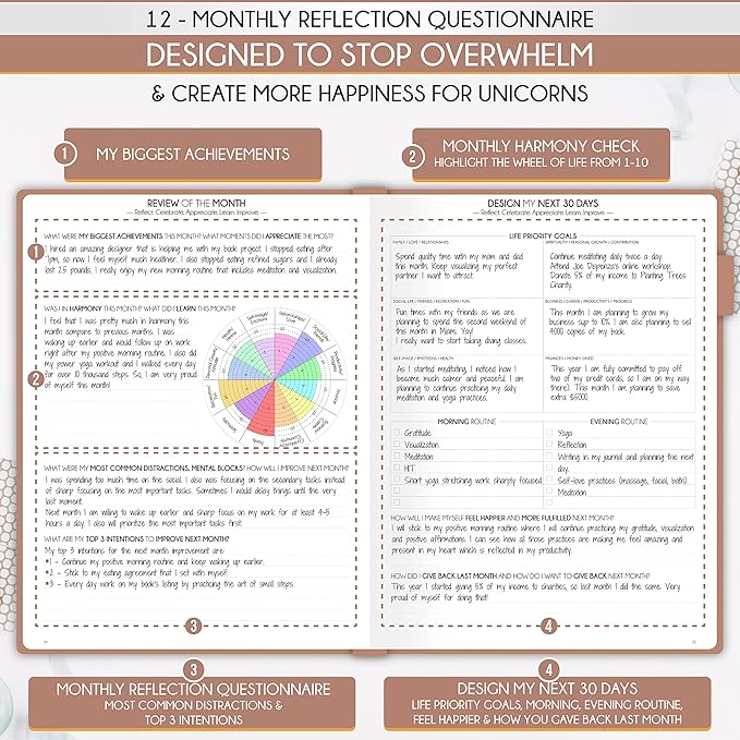 - SELF CARE PLANNER -This premium undated monthly planner teaches you how to apply the law of attraction vibration guide to become the best possible version of yourself on a mental, physical, and interpersonal level, increasing productivity and happiness