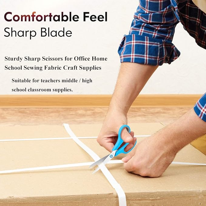 - Comfortable Use: Soft-grip handles for comfortable use, can be used left- or right-handed. Adjustable stainless-steel blade pivot for strength and smooth opening and closing.Work perfectly, and are comfortable in your hand.Can be used as scissors for office, scissors for school, scissors for home, 8 scissors, scissors bulk, Craft scissors, fabric Scissors, heavy duty scissors, scissors pack, Left scissors, sharp scissors, sewing scissors.