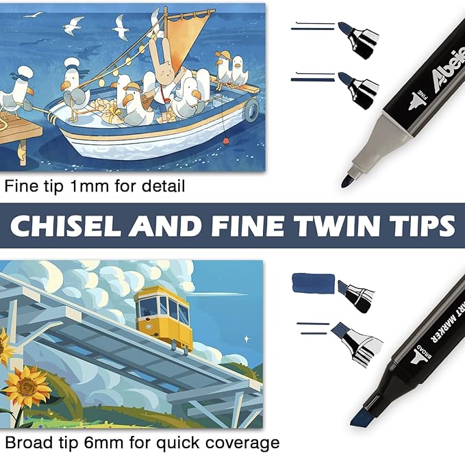 - FINE BULLET POINT & CHISEL TIPS: Artists love using our dual tipped master markers because of their accurate line control, superior color blending and the flexibility of a smooth paintbrush. Clean thick, thin or brushed lines can be achieved with ease.
