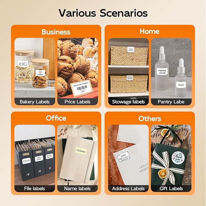 - 【Versatile for Multiple Uses】The Phomemo M120 barcode label printer is an ideal solution for small businesses and shop owners. Its compact design, wireless functionality, and easy-to-use app make it a practical tool for creating product labels, price tags, and shipping addresses.The portable label maker printer supports a wide range of applications, including product labeling, shipping addresses, and organization tasks. It’s suitable for industries like apparel, food, jewelry, and education. The included labels is waterproof, oilproof,durable,ensuring your labels stay clear and intact in various environments.