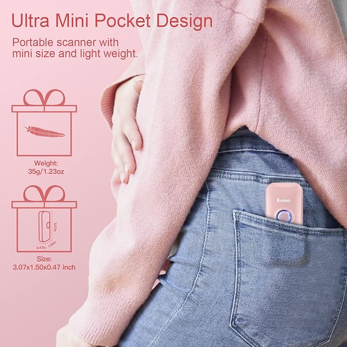 - Specially Design for Women: It's the best gift for your wife or girlfriends. No woman can resist this pink, mini pocket 1D barcode scanner. Bring more color and pleasure to your boring scanning life. Eyoyo portable scanner especially for bookstores, online stores, sales shops, warehouses, etc place. It's a wonderful Valentine's Day present to your girlfriend or wife