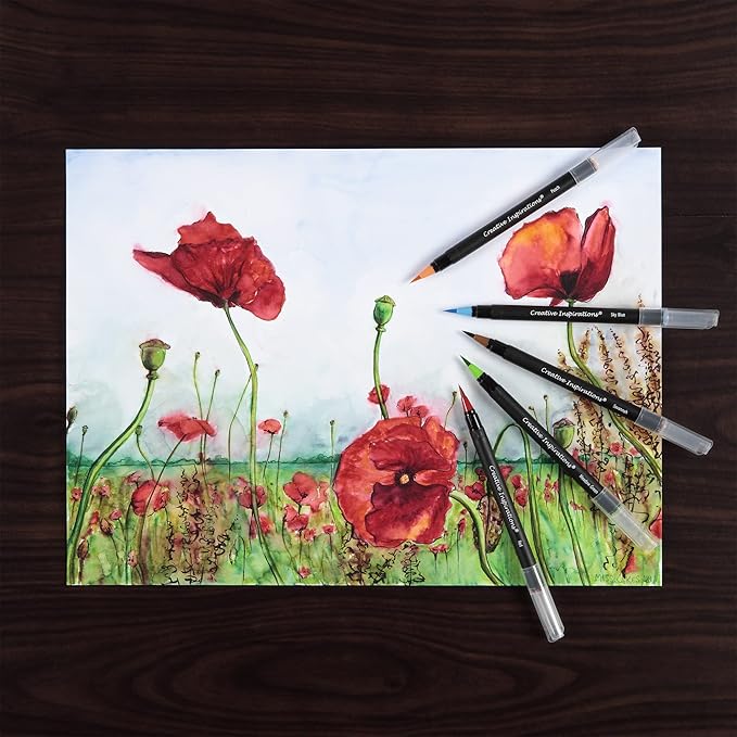 Creative Inspirations Watercolor Brush Pen Set - Water-Soluble Pens for Painting and Coloring - Set of 48 Assorted Colors