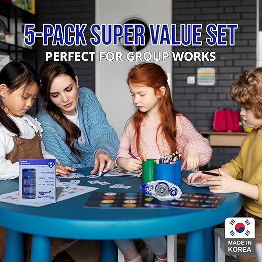 TAPE RUNNER - Double Sided Adhesive with Dispenser Roller Included - Acid Free, Sticky, Clear & Transparent - Ideal for Scrapbooking, Crafts & More - Mini (197 inches per Cartridge), 5 Cartridges