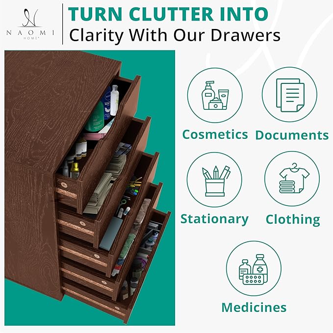 - HEAVY DUTY & EASY TO ASSEMBLE This solid Dresser Drawer Unit with evenly distributed maximum weight capacity. Included Step by Step instrucitons making the Drawer Cabinet easy to assemble. In the unlikely even that you are not satisfied with our Drawer Chest you can reach out to our customer support for refunds/replacements.
