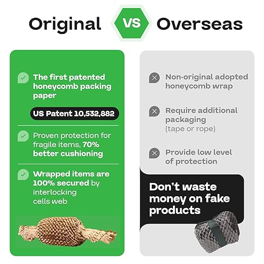 - 【THE ONLY PROVEN SLIT PAPER TECHNOLOGY】 The HexcelWrap produced by the slit paper technology was developed over 30 years ago, and it's been proven to be an effective packing material. Due to the engineered hexagonal cells, this honeycomb wrapping expands as you wrap your items, creating an interlocking web trap. The resulting three-dimensional cushioning product (paper) replaces traditional plastic, bubble, and other paper-based packaging products in terms of properties and efficiency