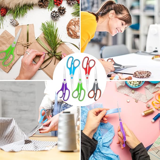 - Comfortable Use: Soft-grip handles for comfortable use, can be used left- or right-handed. Adjustable stainless-steel blade pivot for strength and smooth opening and closing.Work perfectly, and are comfortable in your hand.Can be used as scissors for office, scissors for school, scissors for home, 8 scissors, scissors bulk, Craft scissors, fabric Scissors, heavy duty scissors, scissors pack, Left scissors, sharp scissors, sewing scissors.
